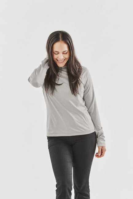 The Women's Volante H2X-DRY L/S Tee features STORMTECH's exclusive H2XDRY moisture management technology, designed to keep water away from your skin and your garment dry without the use of harmful chemicals.