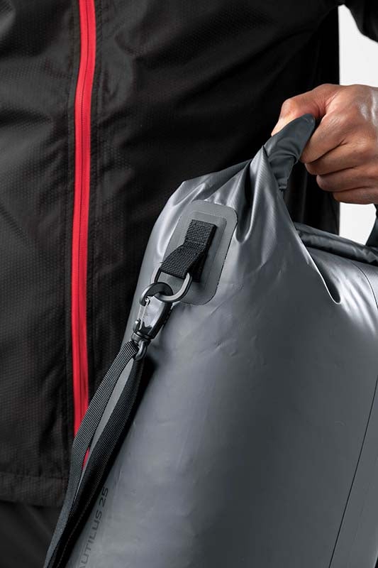 Built with hardwearing reinforced PVC tarpaulin and welded seams, the Nautilus 25 is equally prepared for precipitation or summer rays. The roll-top closure allows the backpack to right-size to your contents, while sealing out the weather. Its adjustable shoulder straps offer flawless fit and comfort for the journey ahead.